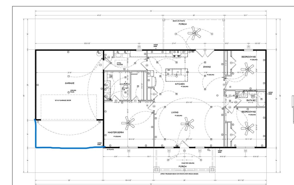 Proposed new construction Barndominium by Red Oak Custom Builders. Wonderful open floorplan with 3 Bedrooms & 2 Bathrooms built on a 9ft plate. Builder's plans for the home - Kitchen to have painted cabinetry, granite on counters, gorgeous walnut butcher block on island, & SS appliances (range, microwave, dishwasher). Spacious utility room. The primary bedroom ensuite has a tub, separate tiled shower, and 2-sink vanity with granite counters. LVP main living areas, carpet in bedrooms. Foam insulation. Class 4 metal roof. Great covered porches, front & back. Metal privacy fence and a garage. Landscaping to include sod in front & back. Wise camera system with 2 cameras & ring doorbell. Builder warranty. This home is just starting so builder's finish out plans ARE SUBJECT TO CHANGE and-or buyer has the opportunity to choose finishes and make some changes at this point, within builder's allowances. All measurements approximate.