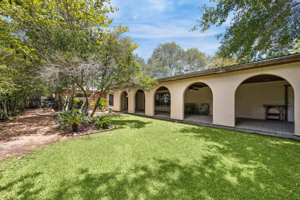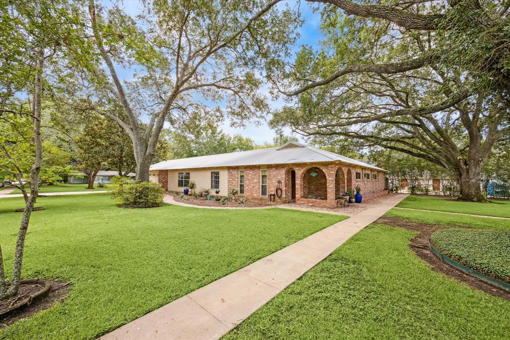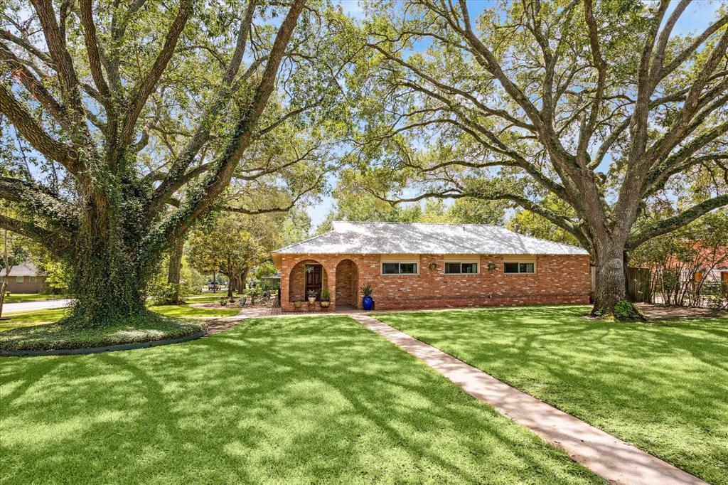 If you desire graceful living among beautiful surroundings you must see this home on a large corner lot w/ custom touches.Impressive entrance features stately oak trees & an inviting arched porch. Walkways of brick meander around front & back of home.Open kitchen w/ breakfast bar is perfect for the cook who doesn't want to be separated from family & guests.Family room w/ wetbar & freestanding fireplace is great for entertaining & big enough for any occasion.It opens to the oversized covered patio that's reminiscent of an open air room w/ arches & speaker system.Full bath located off family room for guests.The hallmark of the dining room is hand hewn cedar beams w/ sliding glass door overlooking the expansive covered patio.Entrance room can be used as flex room depending on needs.4 bedrooms,2 additional full baths located in separate wing.All details have been thought of including whole house generator & sprinkler system.This is no ordinary home.Once you come in you won't want to leave.
