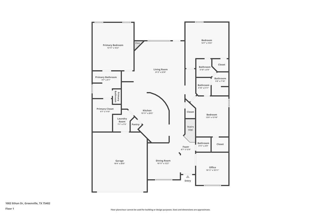 Welcome to 1002 Ethan Drive in Greenville, Texas, a beautifully updated, move-in ready home situated on a spacious corner lot. This thoughtfully designed home features 3 bedrooms plus a dedicated office, all conveniently located on the main floor. Each bedroom offers its own walk-in closet, providing ample storage and functionality. The large, open kitchen is perfect for cooking, gathering, and entertaining, with plenty of space to host family and friends. Upstairs, you will find a versatile game room, an entertainment or media room, and a half bath, creating the perfect retreat or flex space. Step outside to enjoy the oversized covered back patio, ideal for relaxing or entertaining year-round. The backyard is generously sized and fully fenced, with a freshly stained fence and a freshly painted front door that enhance the home’s curb appeal. Additional updates include fresh interior paint and a recent deep clean, making this home truly move-in ready. Conveniently located just minutes from downtown Greenville, you will have easy access to local shopping, dining, and everyday essentials. This home offers the perfect combination of space, functionality, and location. Don’t miss your opportunity to make it yours.