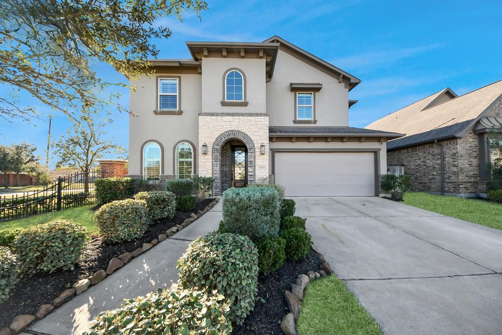 Welcome to 2303 Jasper Point in the award-winning community of Sienna! Built by Newmark Homes, the Strasburg floor plan offers a functional and spacious layout with 4 bedrooms, 3.5 bathrooms, office, game room, and media room. This open concept home features high ceilings, plantation shutters, and a fireplace. The curved iron-rod staircase and catwalk adds unique character. The large kitchen island, breakfast room, and extended back patio allow for seamless indoor/outdoor relaxation and entertainment. Secondary bedrooms and entertainment areas are upstairs, offering separation from main living spaces. Fresh interior paint, new carpet, and paid-off solar panels are great bonuses! Enjoy dining, grilling, or relaxing, with no back neighbors for added privacy. Residents enjoy resort-style amenities including pools, parks, trails, fitness centers, tennis, golf, and community events. Zoned to highly rated Fort Bend ISD schools, with convenient access to shopping, dining, and major roadways!