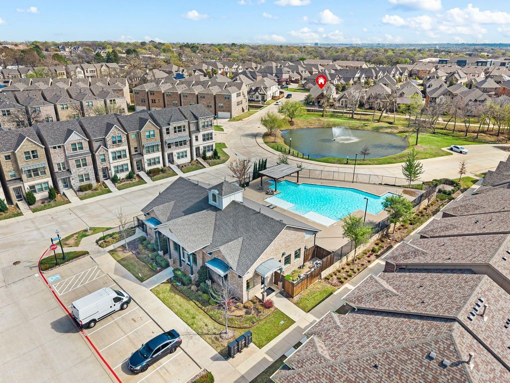 Welcome to this beautifully maintained Beazer Eastland floor plan! Situated on a quiet street, this property offers a perfect blend of comfort, functionality, and convenience. The home features a spacious and inviting floor plan with abundant natural light, generous living areas, and a well-appointed kitchen ideal for everyday living and entertaining. Enjoy scenic pond views from the front porch that adds to the home's charm. The flexible floor plan includes two bedrooms and a study downstairs, providing excellent options for guests, multi-generational living, or a dedicated home office. The primary suite offers a relaxing retreat with a private bath and ample closet space. Conveniently located near shopping, dining, parks, and major highways, this home offers easy access to the entire DFW Metroplex and nearby amenities. Homeowner has added some nice updates that include turf to side and back yards, whole house water filter system, quartz countertops, pullout cabinet organizers in kitchen, above and under cabinet LED lights, pendant lights in kitchen, overhead storage racks in garage.