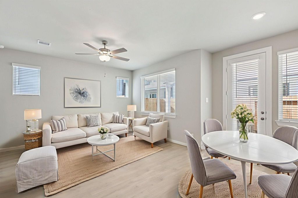 Brand new, energy-efficient home available by Aug 2025! Simplify your morning breakfast at the Caden's large curved kitchen island and dining area. Pebble cabinets with white quartz countertops and white backsplash, grey EVP flooring with multi-tone carpet. This master-planned community is a rare find in Spring Branch. The Townhome Series features a simple buying process with clear pricing and no surprises. With ready move-in homes made up of five two-story floorplans ranging from 1,495 – 2,052 sq. ft., you’re sure to find something you’ll love. Each of our homes is built with innovative, energy-efficient features designed to help you enjoy more savings, better health, real comfort and peace of mind.