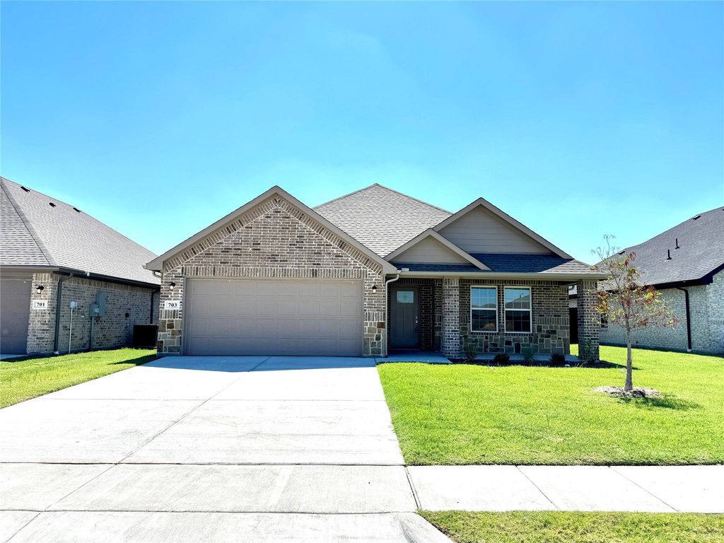 703 Moseley Ln is listed for rent at $ 1,890. The Rental - Single Family property has 3 bedrooms, 2 Full Bathrooms, 1605 square feet and was built in 2024. The lot size is 0.132 Acres. ##BR##Almost New, Move-In Ready! Enjoy this spacious single-story home, just one year old! Featuring 3 bedrooms, 2 bathrooms, and a 2-car garage, this home boasts an open floor plan with elegant wood vinyl flooring throughout. The kitchen is a chef’s dream with granite countertops, under-cabinet lighting, stainless steel appliances, and ample storage. Relax in the primary suite, complete with dual vanities, a separate shower, and a luxurious garden tub. Step outside to a sizable covered patio—perfect for entertaining, hosting BBQs, or enjoying a peaceful morning coffee. Ceiling fans in every room add comfort and style. Located just off Hwy 380 and Interstate 30 and only minutes from L3 Harris in Greenville, this home is part of Greenville’s newest premier neighborhood—an ideal place for your family to settle in and thrive!