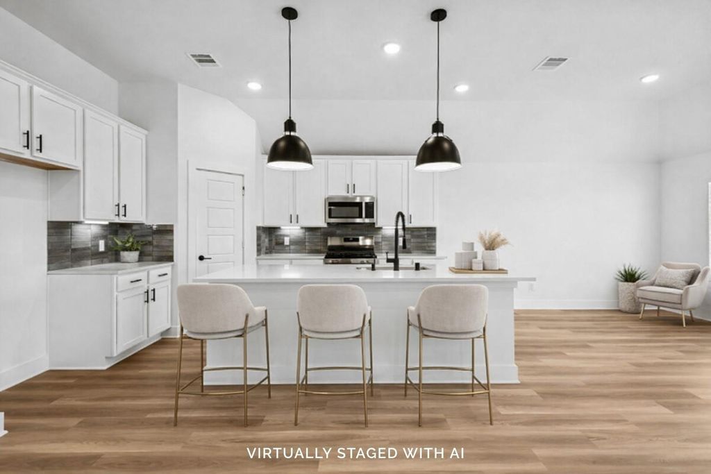 READY NOW! This beautiful home is the Pizarro plan, featuring 4bedrooms, 2 baths, and 2,115 sq ft. It boasts a stunning open-concept layout, a warm and inviting interior, and high, sloped ceilings, making it perfect for entertaining. The spacious living areas, including the kitchen, dining, and family room, are great for gatherings of all sizes. The foyer leads to three additional bedrooms and bathrooms, while the flex room is perfect for a home office. The owner's suite features a bay window with ample space and natural lighting. The owner's bathroom is a luxurious space to enjoy and relax, complete with a walk-in shower, soaking tub, double sink, and an enclosed toilet room. The covered patio is perfect for enjoying your private backyard. Take advantage of this fantastic opportunity! Contact us today to schedule a viewing!
