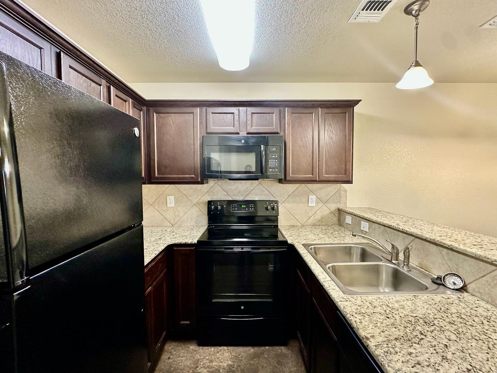Welcome to this townhome-style duplex! Conveniently located close to walking trails, shopping centers, grocery stores, and a movie theater. The bottom floor has beautifully stained concrete flooring! The kitchen is equipped with black appliances, a breakfast bar for added seating, & granite countertops. All bedrooms are located upstairs and feature laminate wood flooring. The Master bedroom has a sitting area great for relaxation, or can be used for office space. The outdoor space features a lovely backyard, perfect for summer gatherings. No future building will be done behind the duplex! Don't miss out; schedule a showing today