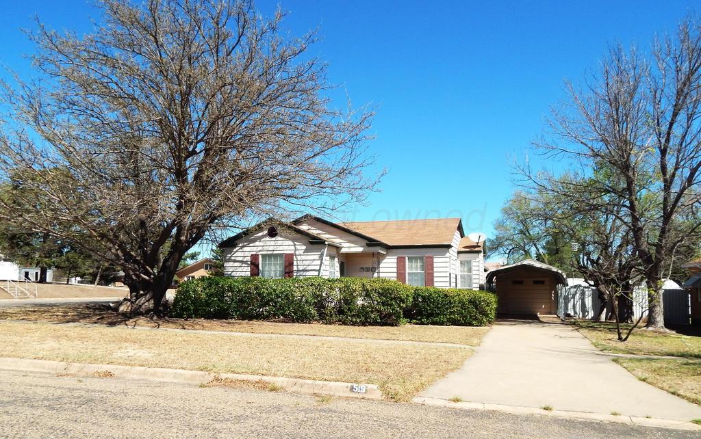 Adorable home on a corner lot in McLean! Quaint front porch welcomes you into a spacious living dining area. Bookcases surround the large front window! The kitchen has a single oven, dishwasher, and cooktop. There is also a builtin area for dining, crafts, or homework!! The second living area offers a utility closet, a half bath, and access to the enclosed back patio. The back yard is fenced and has a storage building. One car garage and carport offer lots of covered parking.