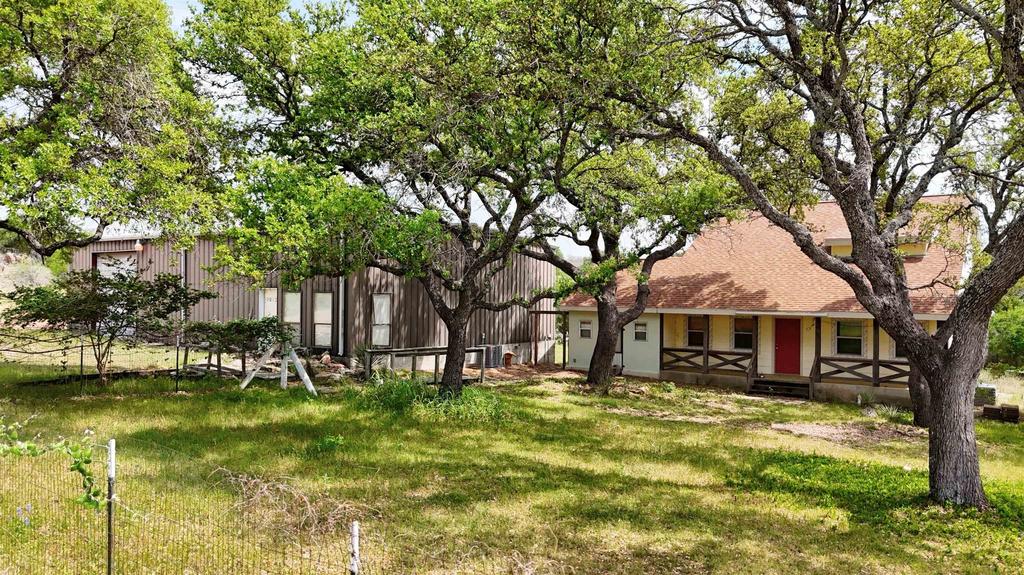 Looking for a property where you can live and work in the Texas Hill Country? Located just a half mile east of Inks Lake on high-traffic State Highway 29, this property has a site-built home and a large metal shop, all on .60 of an acre. The 3/2 home has a vaulted ceiling in the living area, a media room, and a large laundry room. The primary bedroom is downstairs, with two additional bedrooms and a full bath upstairs. This home is full of fun details that make it extra unique. Outside, you''ll find a full-length covered front porch and an oak-filled front yard, as well as a covered back porch and access to covered parking. The large (2,400 sq. ft.) metal shop is just steps away, ready for your business, hobbies, and so much more. The shop has two roll-up doors, two half-baths, multiple rooms, and attic storage with stairs. Inks Lake access is available through POA parks just 2 minutes away. Located approximately 10 minutes west of Burnet, TX, near multiple Highland Lakes and approximately 75 minutes NW of Austin, TX, this would be perfect for everything from a full-time live/work solution to a Texas Hill Country/lake destination. Come discover why this part of Central Texas is booming!