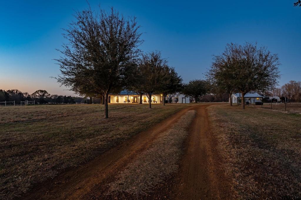 Turnkey East Texas ranchette on 4 +/- acres featuring a 3,600 sqft custom home, versatile shop with apartment, and quality improvements throughout. Property is part of a larger ranch with up to 83 +/- acres available. The energy-efficient main home offers a spacious primary suite with private bath, two guest bedrooms (designed for wardrobes in lieu of closets), hall bath, and two additional flex rooms ideal for office or hobbies. Upstairs includes two large media/game rooms and insulated attic/mechanical/storage area. Enjoy wide front and back porches plus a 20x30 covered pavilion. The shop includes a climate-controlled room with full bath and kitchenette, separate septic and water heater, two roll-up doors, lean-to, 220V power, and RV hookup. An auxiliary buildings has been used for storage and could be converted to an office or hobby shed. A great luxury homestead or weekend retreat within easy reach of Dallas