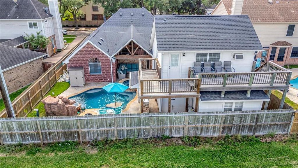 This SHOWSTOPPER has it all - style, function, and an incredible backyard made for living. Completely renovated, this custom home offers a seamless blend of indoor comfort and outdoor entertaining with no back neighbors. Inside, you’ll find ceramic tile flooring throughout, designer finishes, and a spacious open layout that flows effortlessly. The kitchen steals the show with striking quartz waterfall countertops, abundant cabinetry, and easy connection to the living spaces. The primary suite delivers a spa-like retreat with a beautifully updated bath. Step outside to your own private oasis featuring a sparkling pool w/hot tub, fire pit, and a stunning wood-covered patio with outdoor kitchen and bar, perfect for gathering or unwinding. A gated drive leads to the 3+ car air-conditioned garage is a dream for car enthusiasts or hobbyists. Above, a versatile apartment or mancave with full kitchen, bath, and deck adds even more flexibility. A rare find with standout features at every turn.