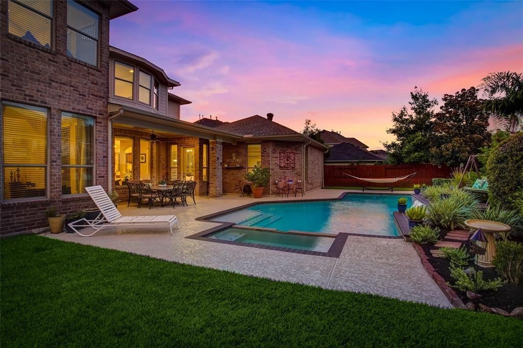 Spacious David Powers executive home featuring a peaceful backyard oasis with covered patio, updated pool & spa, plus yard space and lush landscaping. Grand 2-story foyer with double staircase, formal dining and study, butler’s pantry, and an island kitchen with stainless steel appliances that opens to a breakfast area with a sunroom. The kitchen and bathroom cabinets have been painted a soft creamy hue. The family room offers a fireplace framed with built-ins and floor-to-ceiling windows overlooking the updated pool. The spacious primary suite features a mezzanine loft, spa-like bath with a frameless shower. This home showcases stunning architectural details and exceptional storage throughout, including a hidden room behind the upstairs bookshelf. Upstairs, you’ll find a game room, 3 bedrooms, a study nook, and a large bonus room over the garage. 3-car motor court with porte cochere. Amenity-rich gated community with bus service available to Awty, British, and Village Schools.