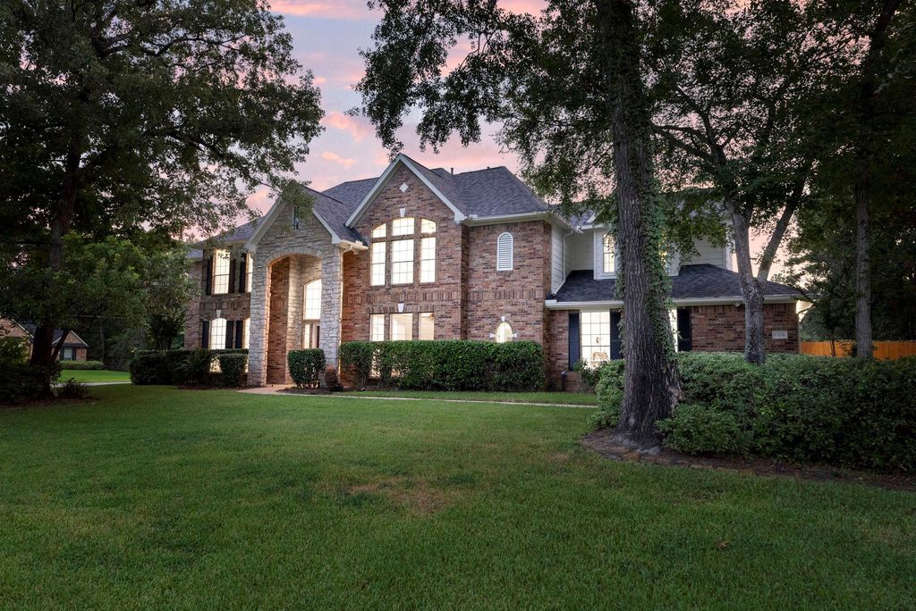 Stunning 5-bed, 4.5-bath home on a 3/4 acre corner lot in desirable Crighton Woods! This home offers a light-filled open floor plan with crown molding, decorative arches, built-ins galore, fresh paint, wood-like tile in living areas and new carpet in the bedrooms. Downstairs features a private study, formal dining and a spacious family room with a corner fireplace, opening to an island kitchen with granite, stainless steel appliances and a breakfast nook with access to 2nd stairway. Luxurious primary suite features high ceilings, a sitting area with a fireplace, and a remodeled spa-like bath with quartz counters and new white cabinetry. Upstairs features a study nook, a game room, four large bedrooms, and three updated bathrooms. Fall in love with the serene backyard oasis featuring a covered patio, expansive deck, sparkling pool/spa, green space and mature trees. New roof in 2021! Convenient to I-45 and close proximity to The Woodlands’ shopping, dining, and entertainment.