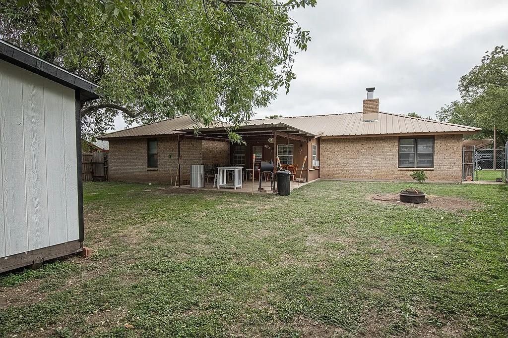 Charming 3-bedroom, 2-bath brick home with a metal roof located in the desirable Meadow Creek area of Sonora, TX. This well-maintained home features numerous recent updates and a functional, inviting layout. The living room offers a vaulted ceiling, durable laminate flooring, and a cozy wood-burning fireplace—perfect for relaxing or entertaining. The kitchen has recently painted cabinets, tile flooring, and open sight lines to both the dining and living areas, creating a bright and connected space. A bonus room just off the living room provides flexibility for a home office, playroom, or small game room. Step outside to enjoy the spacious backyard with a large covered patio, storage building, and convenient alley access with extra parking. A great opportunity to own a move-in-ready home with character, updates, and versatile living spaces in a sought-after neighborhood.