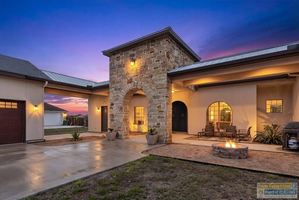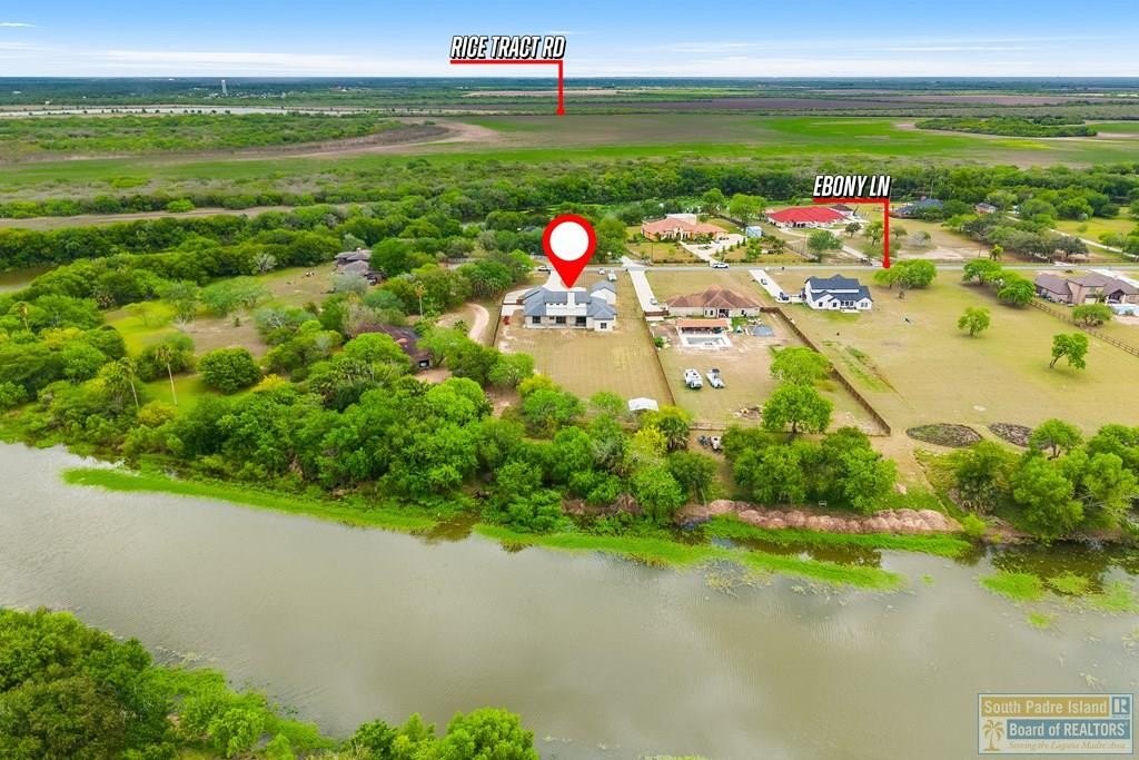 Stunning farmhouse modern home on 1.58 acres of resaca-front property in San Benito, TX. Enjoy a private outdoor retreat with fishing from your backyard (catfish, bass, gar, crappie) and incredible birding. The home features 20+ ft ceilings in the living area and 12+ ft ceilings throughout, creating an open, airy feel. Interior highlights include: maple cabinetry, granite countertops, and a fossil stone wood-burning fireplace. Built for efficiency with spray foam insulation, energy-efficient windows, 2 HVAC systems, and 2 water heaters. Additional features include whole-house water filtration, solid wood doors, large patio doors, and metal roof accents. Exterior offers a spacious covered patio, fire pit, gutters, and ample parking with a 2-car garage plus a separate 1-car garage. A rare blend of space, style, and nature in the RGV. 15 minutes commute to Brownsville. Quick highway access for those needing to travel for work.