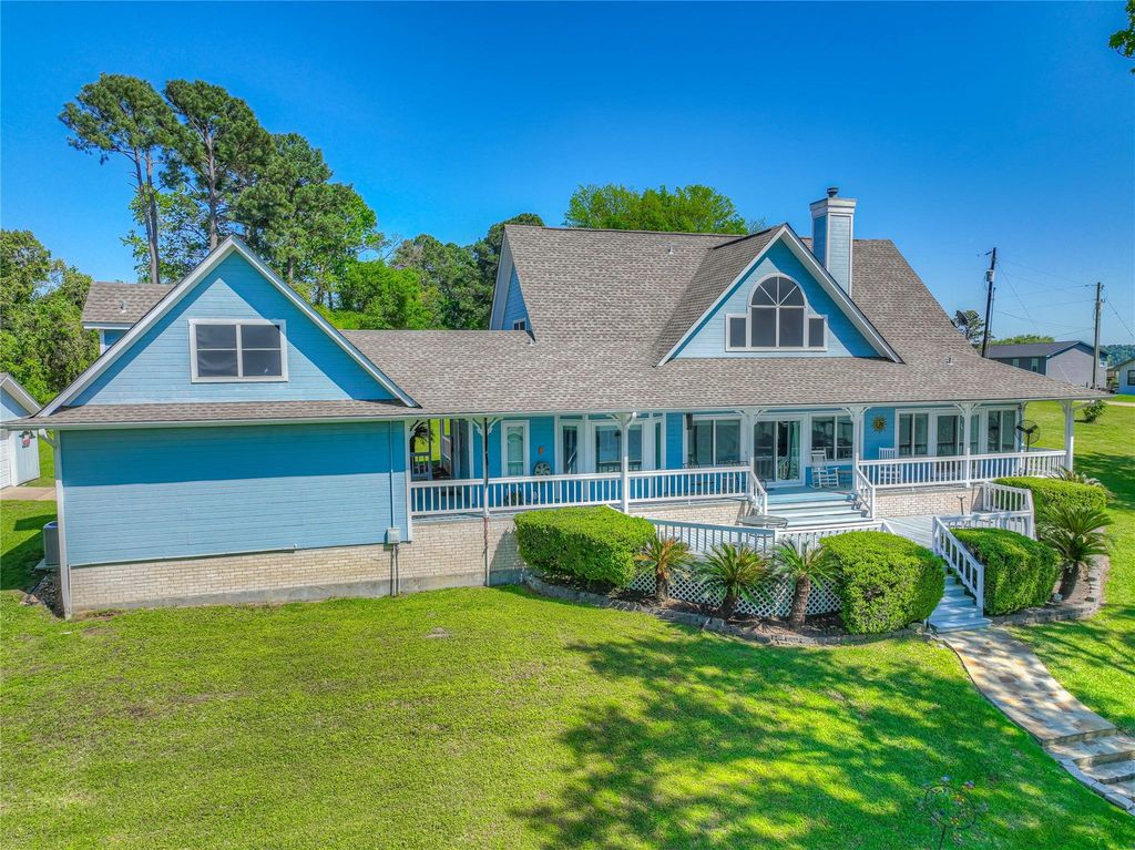 Absolutely stunning fully furnished lakefront home on 1.6 acres. Wrap around porch and oversized deck to gaze at the stunning sunset lake views! UPGRADES AND UPDATES GALORE! Tall, dramatic ceilings in living room w fireplace w lots of natural light and windows w a breathtaking lake view. Open concept living room open to breakfast dining and completely renovated kitchen w island gas cooktop, gorgeous countertops, white cabinets. Formal dining area. Primary bedroom has stunning lake views and sliding doors opens to deck area. Updated flooring (no carpet), Pex plumbing, Generac generator, Renewal by Anderson windows, nearly entire home has been completely remodeled. Attached 2 car garage w an Extra 2 car garage make this a 4 car garage! Garage apartment (not included in square footage) w it's own access door, remodeled full bath and plenty of space for guests! Water treatment system, on demand hot water, sprinkler system, Spider B Gone system, 3 boat slips w boat in water included.