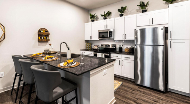 Kitchen Prep Islands, Full Size Washer and Dryers, Gourmet Kitchen With Granite Countertop and Tiled Backsplash, Heated Swimming Pool, Yoga Studio, Daily Events and Fitness Classes, Personal Training