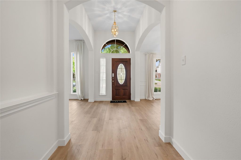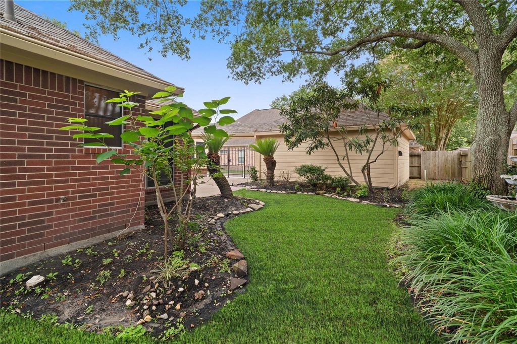 Beautifully updated single-story home in Houston’s Aberdeen Trails featuring a bright, open layout and modern finishes throughout. Spacious living area with vaulted ceilings and abundant natural light flows seamlessly into the kitchen and dining spaces—ideal for everyday living and entertaining. The kitchen offers generous counter space and clear sightlines to main living areas. Primary suite includes a large ensuite bath with dual vanities, soaking tub, separate shower, and walk-in closet. Secondary bedrooms are well-sized with ample storage. Step outside to a covered patio and private backyard with mature landscaping, perfect for outdoor relaxation. Convenient location near shopping, dining, and major commuter routes.