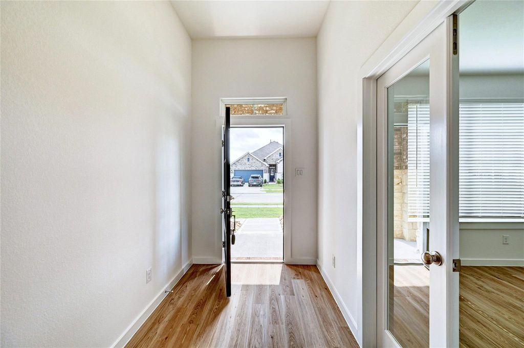 This beautifully crafted 1 story home with a brick& stone elevation offers the perfect blend of luxury, comfort, &modern style. Featuring 10-foot ceilings& luxury vinyl plank flooring throughout—no carpet—this open & airy layout is ideal for today’s lifestyle.The contemporary kitchen is a chef’s dream, showcasing granite countertops, gas appliances, a large center island,&42-inch upper cabinets. All ss appliances are included, including the refrigerator, washer& dryer, for added convenience. The home offers 3 spacious bedrooms plus a dedicated study with elegant French drs—perfect for working from home or a quiet retreat. Recessed lighting& abundant natural light enhance the bright & inviting atmosphere throughout. The generously sized primary suite features a spa-like bathroom with a soaking tub, separate shower, & a large walk-in closet. Step outside to enjoy a covered patio& a nicely sized backyard—ideal for entertaining or relaxing. Photos were taken when the home was vacant.