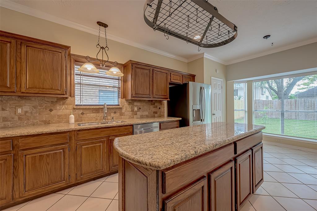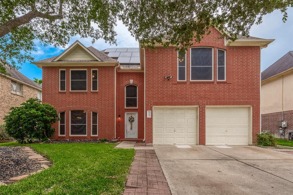 This stunning 4 bed, 2.5 bath SMART home features fresh landscaping, PAID OFF SOLAR PANELS, Ring doorbell, Nest thermostats, a TESLA POWERWALL & tons of natural light. WASHER/DRYER/FRIDGE INCLUDED! The main level boasts a grand two-story entryway, formal dining room, spacious living room w/ gas fireplace, convenient powder room, breakfast nook w/bay window, and a well-appointed kitchen w/granite counters, stainless appliances, center island w/storage, breakfast peninsula w/seating, and a generous pantry. NO CARPET! The upper level features a private primary bedroom w/double walk-in closets, a private spa-like bath, three secondary bedrooms, a full secondary bath & a large laundry room. The fully fenced backyard includes a covered patio, swing, extended open patio & shed. Amenities include a community pool, parks, and playgrounds. Zoned to PEARLAND schools! Close to shopping, dining & entertainment. Easy access to Broadway Blvd, Main St, I-45, Beltway 8, and Baybrook Mall.