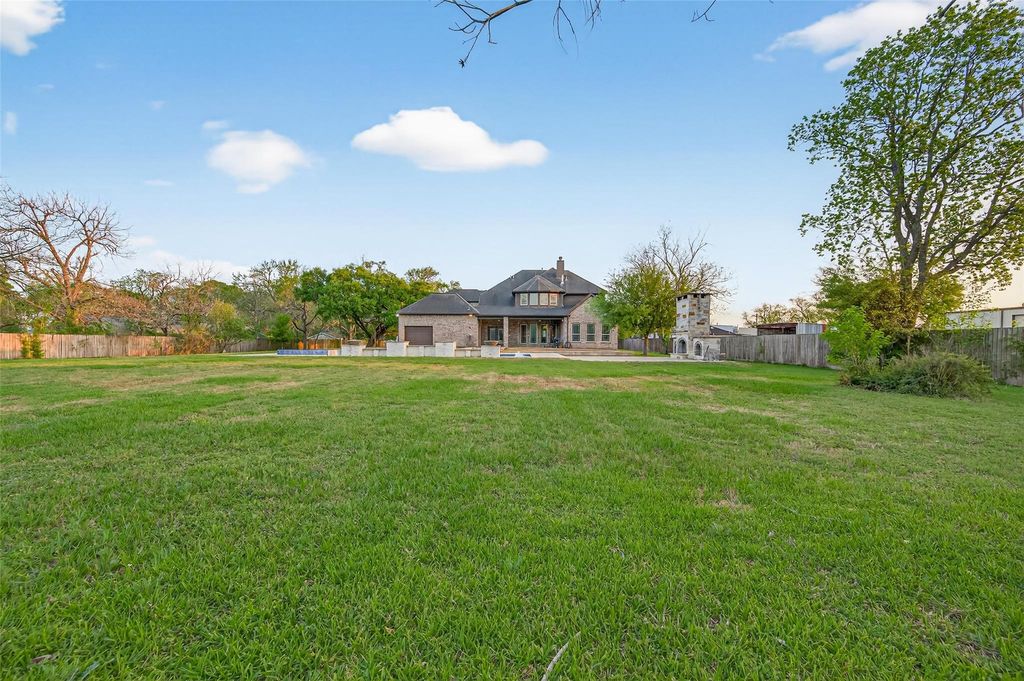 Two-story luxury residence situated on a 2.63 acre lot. The perfect blend of modern comfort with indoor/outdoor elegance. This spacious home offers 4–5 bedrooms, 4 full bathrooms, and 2 half baths. This open and thoughtfully designed layout offers generous living spaces, high ceilings, and abundant natural light. The main level features a well-appointed kitchen with granite counter tops, stainless steel appliances, wine fridge and a breakfast bar. The fifth room can be used as a bedroom, home office, or guest suite. The downstairs primary bedroom is a luxurious primary suite with a spa-like bath; separate shower, jetted tub and a vanity area. The upstairs bedrooms and baths are also designed for comfort and convenience with ample space. Outside, you'll find your own backyard retreat! The expansive patio surrounds a stunning resort-style pool. The outdoor fireplace and seating area add warmth and charm, while the large yard provides plenty of space for future customization.