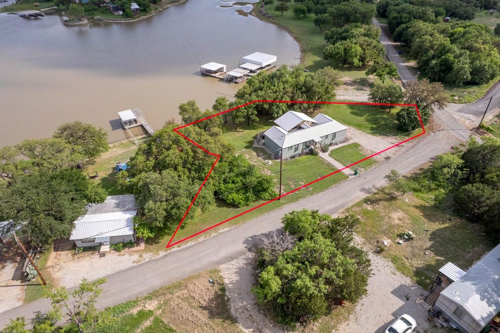 Welcome to your perfect lakeside getaway! This inviting 3-bedroom, 2-bath home sits right on the shores of Lake Brownwood and has been a proven short-term rental for years, offering both a peaceful personal retreat and strong income potential. Designed for effortless lake living, the home features a bright open floor plan perfect for entertaining or simply enjoying the view. Large sliding glass doors invite you onto the expansive 60-foot deck, the true focal point of this home. With its vaulted wood ceiling, generous seating areas, and beautiful lake views, this deck is a perfect for relaxing, or family time. Grill out, unwind in the hot tub, or watch the sunset over the water with friends and family—this outdoor space is made for making memories. Inside, the thoughtful split floor plan provides privacy and comfort for you and your guests. The spacious primary suite includes an ensuite bath and easy access to the laundry area, while two additional bedrooms and a full guest bath are conveniently located on the opposite side. Energy-efficient windows, durable metal roof and siding, and low-maintenance finishes make ownership simple and stress-free. Outside, the gentle slope to the water leads you to a peaceful shoreline perfect for swimming, kayaking, or fishing just steps from your back door. Located on a quiet road with tons of by mature trees in the backyard, you or your guests will feel right at home. Whether you’re looking to expand your investment portfolio, start a turn-key STR, or find your forever weekend escape, this property delivers the best of both worlds: income potential and tranquil lakeside living, all wrapped into one exceptional package. This home can be purchased as-is for turnkey operation of the STR already in place. Come take a look today and make this piece of Texas YOUR next piece of Texas.