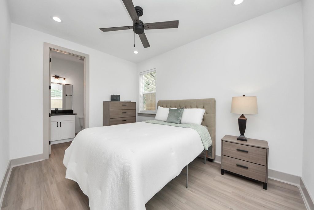 This three story home offers a flexible first floor space that can easily function as a home office, study, or reading area, while the top level features a private primary suite along with two additional bedrooms. With 3 bedrooms and 3.5 bathrooms, the layout is open and well suited for both everyday living and entertaining. The home includes modern interior finishes, energy efficient appliances, and a two car garage with generous storage. Located in the gated Creekmont at Garden Oaks community, this newly built residence has never been lived in and provides a peaceful setting with convenient access to key Houston areas. More units available!!! Call my office for specials in the month of April