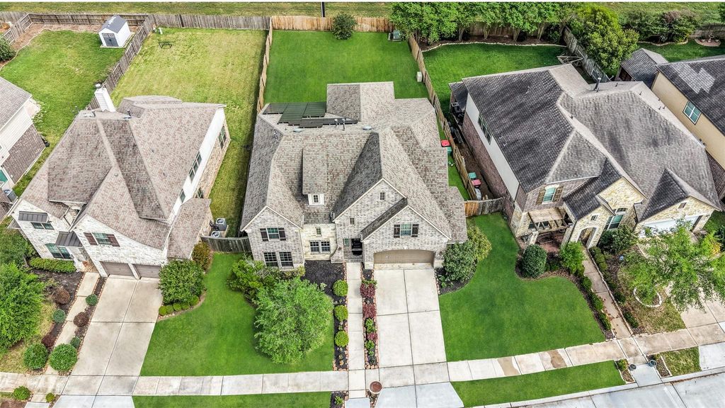 Gorgeous home located in the highly sought-after Sienna community. Grand rotunda entry w/a sweeping staircase leads to the open-concept family room featuring soaring ceilings. The gourmet kitchen boasts a large island w/breakfast bar seating, walk-in pantry & adjoining breakfast nook. Two story home office is enclosed by French doors & has upgraded built-in shelving. Luxurious primary suite includes a custom closet by Closets by Design. Upgraded hickory wood flooring extends through the common areas & bedrooms. A guest bedroom w/an en-suite bath is conveniently located on the 1st floor. A spacious gameroom, dedicated media room & additional guest bedrooms are found upstairs. Walk-in closets in all bedrooms. Epoxy coated garage floor. Outdoors, enjoy a large backyard w/no back neighbors. Solar panels & a battery back up provide energy savings & no interruption of power during outages. Walking distance to the high school & to Sawmill Lake Club that has numerous resort-style amenities.
