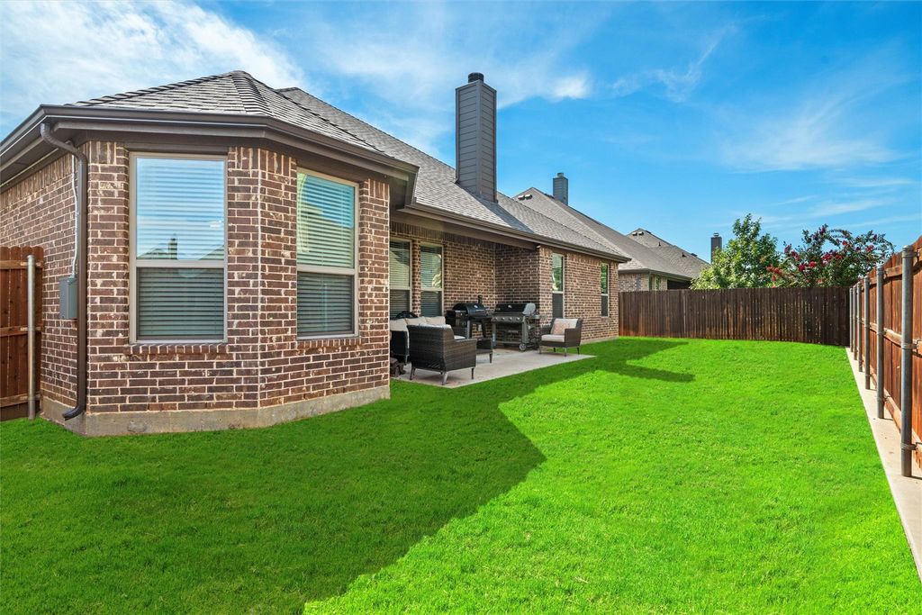 LARGE ONE STORY HOME! Beautiful spacious 2630sf John Houston 1 story home on QUIET tree lined cul-de-sac in Burleson, Joshua ISD Shows like new! Upgrades! Move in ready! Drive up appeal! HOA-maintained grassy no-build lots across the street offering a tree-lined view. Welcoming covered front porch opens to expansive entry. Crown molding graces the entire home, double French doors reveal a versatile 14x14 office or second living. Extra-large island in kitchen is a chef's delight complete with gas cooktop, pot filler, double ovens, new microwave, & big walk-in pantry. Primary suite features luxury ensuite spa bath with separate shower, linen closet, & large walk-in closet separate from 3 secondary bedrooms & bath. Living area features floor-to-ceiling stone fireplace & natural light creating a warm inviting space. Covered patio has gas line, ready for grilling. Freshly stained wood fence. Separate utility room has room for fridge. New roof 2023 New HVAC coil 2024.