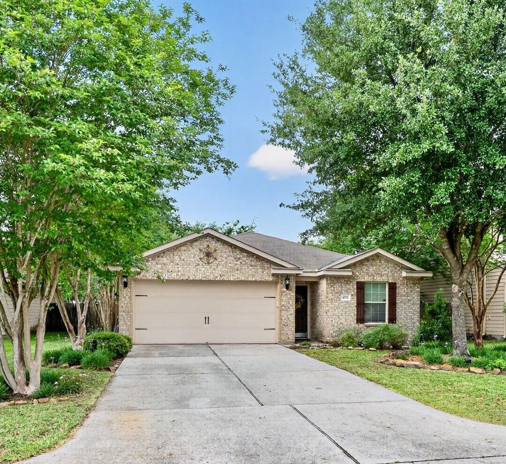 Charming and well-maintained single-story home featuring 3 spacious bedrooms and an inviting open-concept floor plan. The expansive living room flows seamlessly into a beautifully appointed kitchen with granite countertops, abundant workspace, and plenty of room for the home chef. Just off the kitchen, the laundry room adds convenience, and the washer, dryer, and refrigerator are included. The generous primary suite offers a large walk-in closet and a relaxing en-suite bath complete with a soaking tub and separate shower. Carpet only in bedroom and beautiful wood laminate flooring in all other rooms. Step outside to your own backyard retreat—an oversized covered patio overlooks a beautifully landscaped, park-like fenced yard, perfect for entertaining or unwinding. Ideally located with easy access to State Highway 99, and just minutes from shopping, dining, and all the amenities of The Woodlands, this home combines comfort, convenience, and charm.