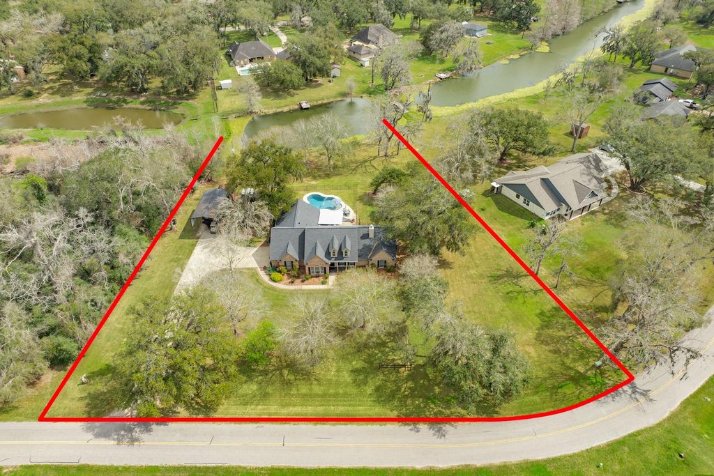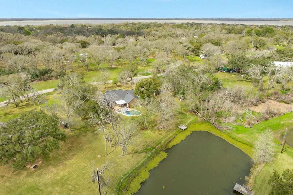 Welcome to 2403 Whitetail Ln, a beautifully situated home on 1.8 acres just outside Lake Jackson, TX. Tucked away at the end of a peaceful road in the Sugar Mill subdivision, this residence offers a private setting with ample space for everyday living and entertaining. The 2,354 sq ft home features a split floor plan with a spacious primary suite boasting 10-ft ceilings, large windows overlooking the backyard and pool, and doors to the patio. The open family room flows seamlessly into the kitchen with a large island and bar seating. Adjacent, the breakfast area is bright and comfortable, the formal dining room provides an elegant entertaining space, and the sunroom offers a light filled retreat. Outdoors, enjoy a refreshing pool and patio framed by mature trees, McFadden Bayou frontage, a private pier, and RV parking. This home combines spacious, thoughtfully designed custom interiors with a beautiful outdoor setting, offering the ideal blend of comfort, style, and lifestyle.