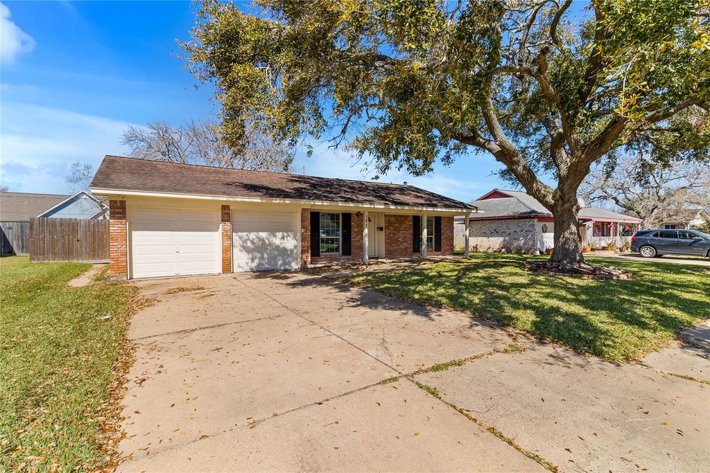 Brick construction, mature trees & a floor plan that flows in an established neighborhood with 3 bedrooms, 2 full baths & a 0.21 acre lot with no HOA. The front entry opens into the living room with views of the two dining spaces, creating an open feel & a natural path from the front door to the backyard. Granite countertops in the kitchen & both baths, stainless steel appliances, vinyl plank flooring throughout the main living areas & carpet in the bedrooms complete the space. The primary suite includes a walk-in closet & an en suite bath with a walk-in shower. The 2-car garage has a freshly painted floor & connects to the kitchen for ease of loading/unloading. Step through the French doors & the backyard delivers with a large wooden deck, mature shade trees & a fully fenced yard. Improvements include: HVAC replaced in 2025, Water Heater replaced in 2026, Windows replaced in 2018 & Roof replaced in 2016. Zoned to Roberts Elementary, Rasco Middle, Brazoswood High School. Call today!