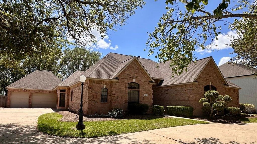 Serene Waterfront Living in Timbercreek. This stunning single-story brick home sits along Oyster Creek, offering a perfect blend of comfort and style. The open-concept kitchen features a large granite island, custom cabinetry, and flows into a spacious family room with cathedral ceilings. The remodeled primary suite is filled with natural light and includes slate floors, a soaking tub, vanity, and custom shower. Storage abounds with oversized walk-in closets throughout. Enjoy entertaining in the formal dining room with hardwood floors or relaxing while watching Lake Jackson’s 4th of July fireworks from your circular drive. A flexible fourth bedroom can serve as a nursery or office. The three-car garage includes a built-in workshop. Key updates include two 16-SEER AC units (2018/2020), a 2015 new roof, 2023 hot water heaters, a 2024 Liftmaster garage door opener and home foundation leveling with a transferable Lifetime Warranty (2019).