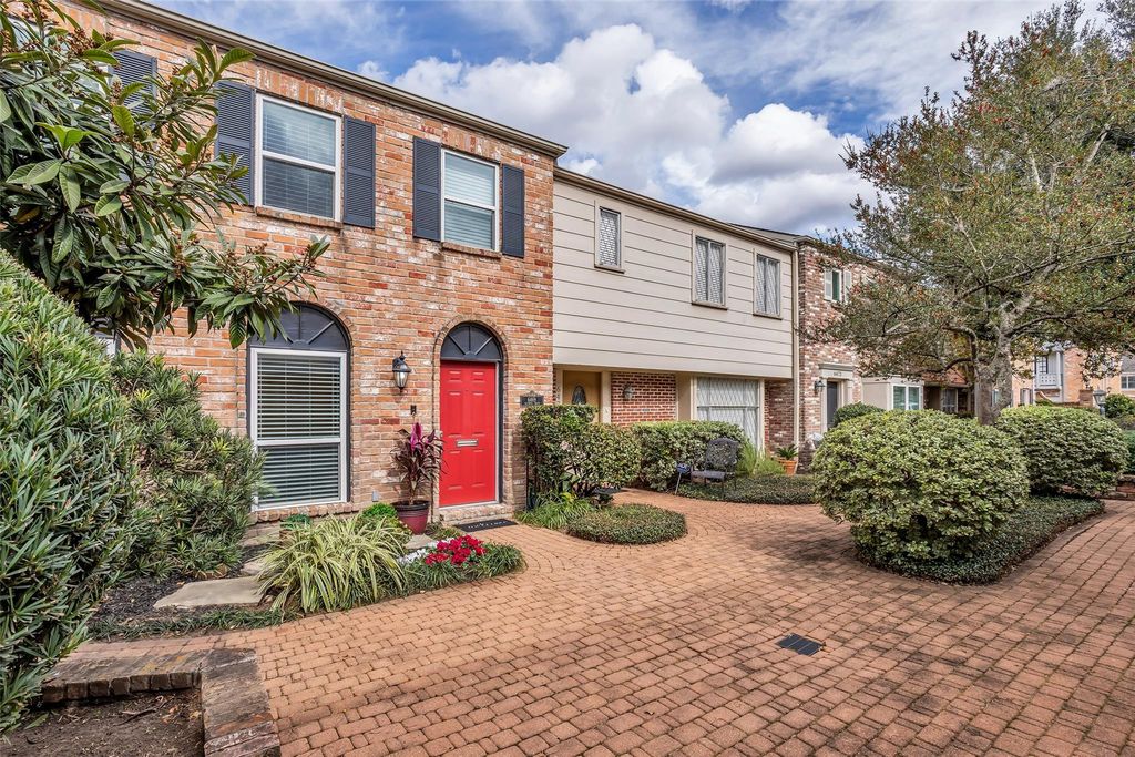 This condominium/townhouse offers approximately 1,800 square feet of living space with three bedrooms and two and a half bathrooms, a garage, and a carport. The brick exterior and arched entryway create a charming and inviting first impression. The interior features a spacious and well-designed layout, flooded with abundant natural light. Vinyl wood-look flooring throughout the main living areas lends a warm and elegant ambiance. The neutral color palette provides a blank canvas for personalization. The primary bedroom is generously sized, ensuite bath with shower, vanity, and two large walk-in closets. Storage needs are well-accommodated, with ample built-in storage solutions throughout the home. The covered patio with brick flooring provides an outdoor living space. Ample parking is available, ensuring convenience for residents and guests. The community offers an outdoor pool and spacious playground, to enhances the living experience. Some photos have been virtually staged.