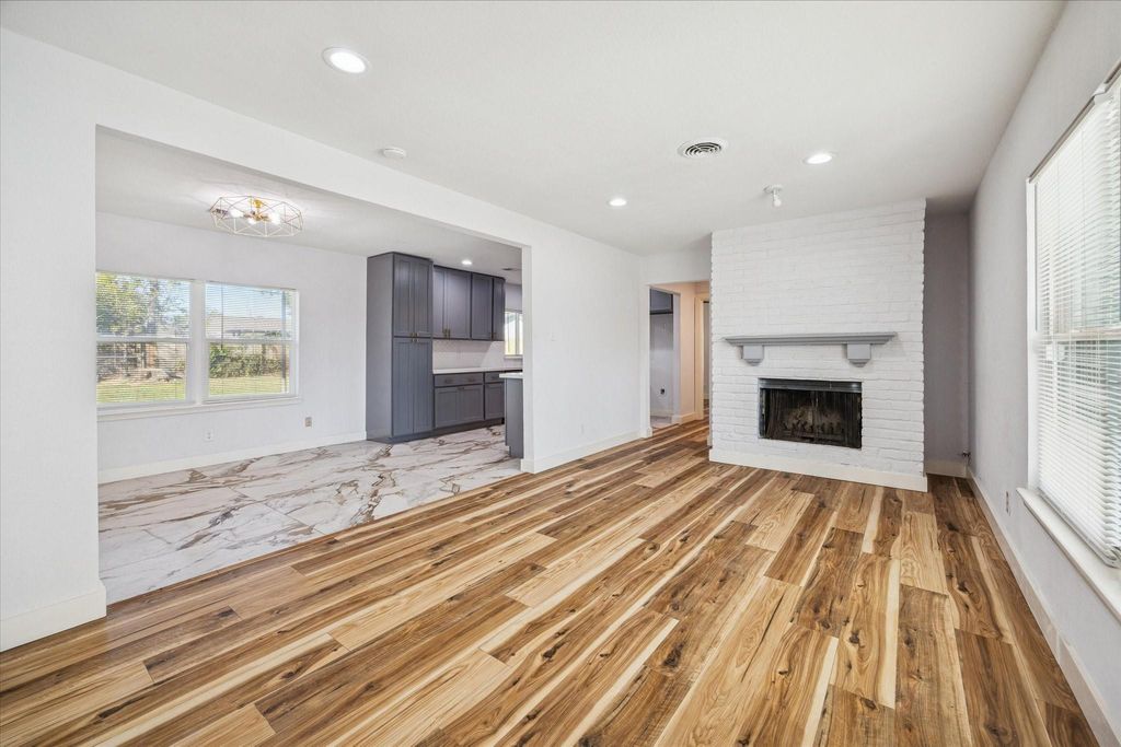 Welcome to 1726 Ansbury Drive! This beautifully updated home features a warm living area with laminate wood floors and a striking gas log fireplace. The modern kitchen showcases new cabinetry, quartz counters, stainless steel appliances, and elegant marble tile flooring. The spacious primary suite offers a private bath with a shower/tub combo, quartz countertops, and a walk-in closet. Three additional bedrooms and a stylishly renovated guest bath with dual sinks, accent tile, and custom mirrors provide plenty of space for family or guests. Ideally located near 610 with easy access to the Heights, Downtown, and the Galleria, this move-in-ready home combines comfort, convenience, and contemporary style.