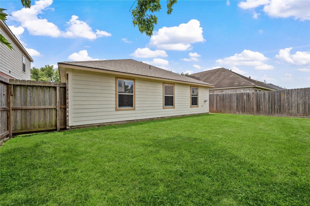 Refreshed 3-bedroom, 2-bathroom, move-in-ready home in Clayton's Corner presents a neutral palette enhanced with rich accents. Home features new (May 2025): roof, interior paint, & carpet. A/C replaced June 2022. Upon entering, you will be greeted by a spacious living room with great natural lighting. A stylish French-inspired kitchen awaits with natural stone effect tile flooring & backsplash, antiqued white cabinetry with oil rubbed bronze finishes, a gas range, a pantry, & a breakfast nook with a sliding door to the patio. The primary suite is highlighted with a tray ceiling, a walk-in closet with built-in shelving & hanging rods, & a bathroom with: separate soaking tub & shower, an extended vanity countertop, & an obscured glass window. Flagstone walkway runs from the back fence entry to the green space. French drain system and 2-year transferable home warranty. Community park with playground, field, and picnic tables. Close access to 1960, local shopping, dining, & entertainment.