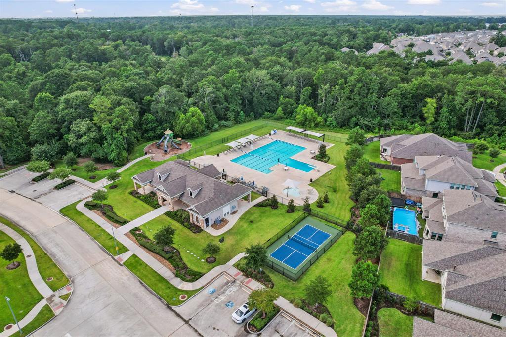 Located in the Royal Brook village of the master planned community of Kingwood and zoned to Kingwood schools, this 4 bedroom, 3 ½ bathroom meticulously maintained home is located on a cul-de-sac lot. Whole house generator. Inside hosts an easy flow layout with great natural lighting and airy ambiance. Kitchen features: generous granite countertop space, great cabinet storage space, gas range, breakfast bar, separate breakfast nook, adjacent formal dining room, and open flow to living room. Downstairs primary bedroom with en suite bathroom offers dual sink vanity. Upstairs offers a game room/flex space, 3 bedrooms, and 2 additional full bathrooms. Covered back patio with plenty of seating space. EV charging station. Neighborhood features: sidewalks, pool, playgrounds, club house, pickleball court, and more. Community amenities include: East End Park, miles of greenbelt trails, local shopping and dining. Close access to 59/69, 99, and IAH.