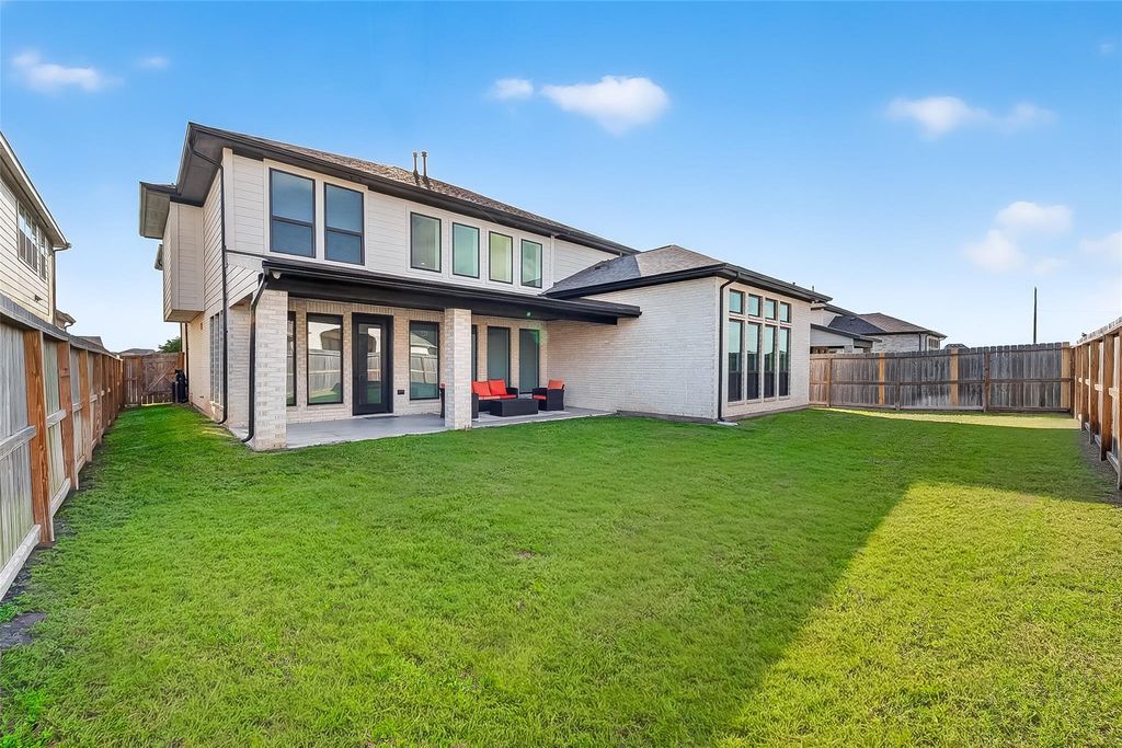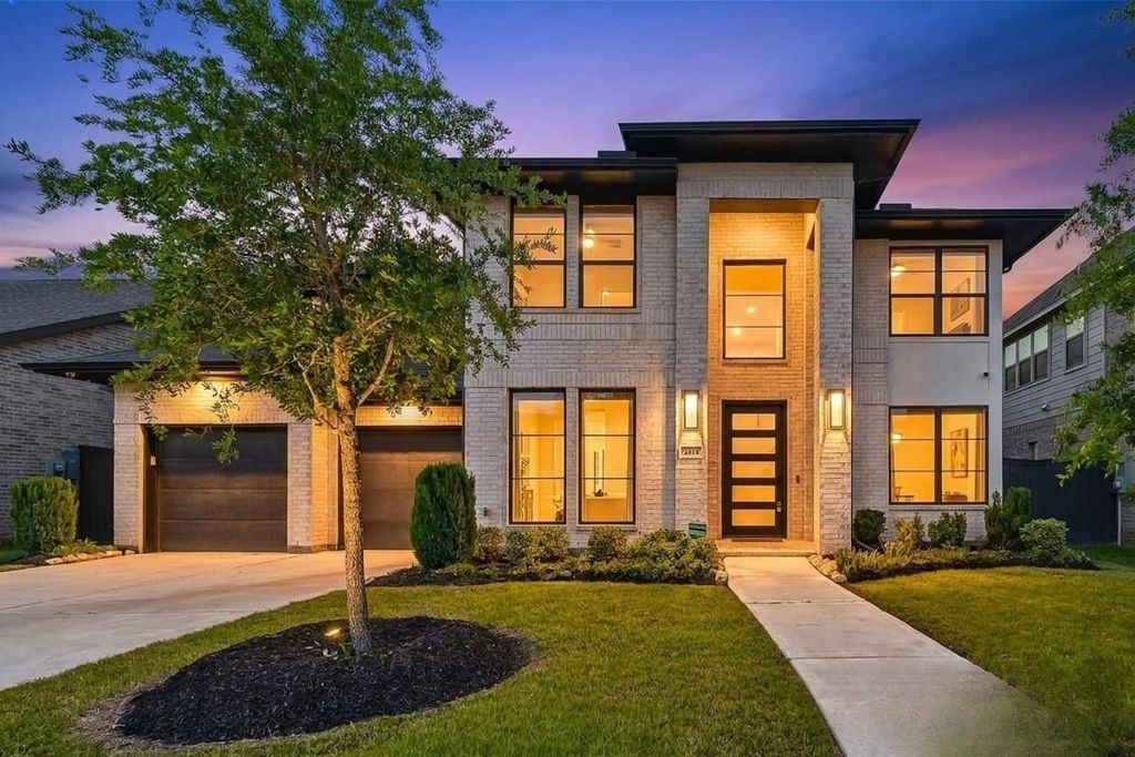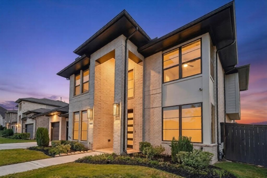 Step into LUXURY! LIKE NEW w/TONS OF DESIGN CENTER UPGRADES! Stunning Perry Home: 5 bedrooms (2 Down) / 4.5 Baths. Situated on a spacious 60’ lot with stunning Brick & Stucco elevation and an impressive 8’ modern wood/glass front door. Inside, enjoy a dramatic rotunda entry, curved staircase with wrought iron balusters, 8’ interior doors, upgraded wood floors, designer lighting, and remote shades. The home features a private office with glass doors, formal dining, and an upgraded butler’s pantry with wine rack and beverage cooler. The chef’s kitchen boasts a waterfall quartz island, induction cooktop, double ovens, and reverse osmosis. Spacious family room with stone focal wall and wall of windows. Luxurious Primary suite plus guest suite downstairs. Upstairs includes game room, surround sound media room, and 3 spacious bedrooms. Extended covered patio, sprinkler system, water softener, wired cameras, surround sound, and 3-car tandem garage with Tesla charger!