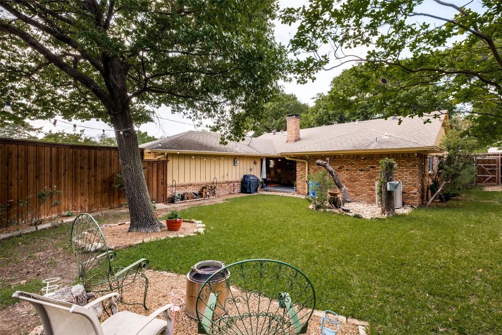 Beautifully updated single-story home in Lochwood Meadows offering the perfect blend of classic charm and modern improvements. This 3 bedroom, 2.5 bath home features energy efficient windows, a fully renovated primary bathroom, and an upgraded electrical panel that has been thoughtfully relocated for improved functionality. The entire home showcases a designer selected custom color palette, creating a warm, cohesive, and elevated feel throughout. The spacious layout includes multiple living and dining areas, ideal for both everyday living and entertaining. The kitchen offers abundant cabinetry, granite countertops, and flows seamlessly into the main living spaces. A cozy fireplace anchors the family room, while large windows bring in natural light and views of the private backyard. Step outside to a covered back patio where the ceiling has been opened to add volume and architectural interest, creating an inviting space to relax or entertain. The backyard is enhanced by a recently replaced and upgraded wood fence and features a unique outdoor shower, perfect for cooling off, rinsing off after outdoor activities, or adding a spa like touch to your daily routine. Additional improvements include front yard drainage enhancements for added peace of mind. Situated on a beautifully landscaped interior lot with mature trees and rear entry garage, this home is conveniently located near White Rock Lake, parks, dining, and shopping. A rare opportunity to own a thoughtfully updated home in an established East Dallas neighborhood. Buyer will need to purchase a new survey.