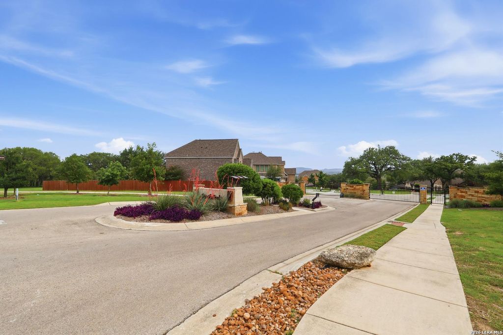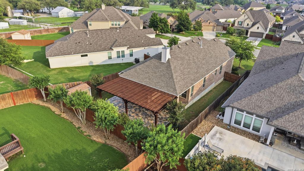 Located on a quiet cul-de-sac within the gated South Fork section of Johnson Ranch, this impeccably maintained one-story Highland Homes residence offers 4 bedrooms, 2.5 baths, and refined Hill Country living with quality craftsmanship throughout. The open-concept layout is filled with abundant natural light, soaring ceilings, and solid flooring throughout with no carpet. A chef's kitchen anchors the home with an oversized granite island, 42" cabinetry, designer tile backsplash, gas cooking, and built-in stainless steel appliances, all flowing seamlessly into the spacious living area highlighted by a floor-to-ceiling stone fireplace. The private primary suite features a spa-inspired bath with dual vanities, a soaking tub, and separate walk-in shower. Outdoors, the oversized covered patio creates the perfect setting for relaxing or entertaining. Residents enjoy access to Johnson Ranch amenities including a resort-style pool, basketball court, playground, and scenic community spaces.