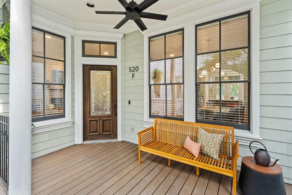 Architect-owned & designed, this EXTENSIVELY RENOVATED 3-bedroom, 2.5-bath home blends function and elevated living with improved flow, storage, and energy efficiency using sustainable materials.Prime Heights location zoned to Harvard & Hogg, offering highly desirable FIRST-FLOOR LIVING and direct access to the Hike & Bike Trail.On this block, kids walk to school together—making mornings & afternoons easy.Charming courtyard setting where neighbors gather offers rare community feel.Oak hardwoods span main level.Custom kitchen w/new appliances,breakfast nook & trail views from deck & sink for easy indoor-outdoor living.Upstairs renovated primary suite features larger spa-like bath & custom closet.Private covered balcony among mature trees (enclosure potential).Expansive covered front porch extends living outdoors.RECENT ROOF & HVAC!Oversized 2-car garage w/storage+guest parking spots.Steps to Coltivare,Padres,JuiceLand/Black Swan Yoga,Tiny’s & more!Outside of floodplains & never flooded.