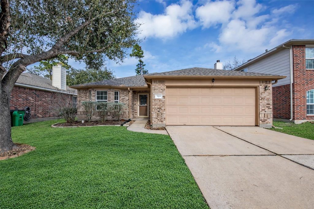 Welcome home to this charming and move-in-ready 3-bedroom, 2-bath home with a 2-car garage—an ideal starter home or investment property. Fresh interior paint and a classic brick exterior offer great curb appeal from the start. Inside, the spacious front room provides flexibility as a cozy living area, dining space, or home office. The island kitchen is open concept to the family room and perfect for everyday living and entertaining, featuring granite countertops and stainless appliances. Refrigerator stays! The spacious family room features a gaslog fireplace and natural light. The split plan offers added privacy for the primary suite complete with double vanities, a whirlpool tub, and separate shower—your own peaceful retreat. Enjoy quiet mornings or weekend gatherings on the covered back patio and rest easy knowing a full-home generator provides added peace of mind. Comfortable, functional, and ready for new memories—this home is a wonderful place to begin your next chapter