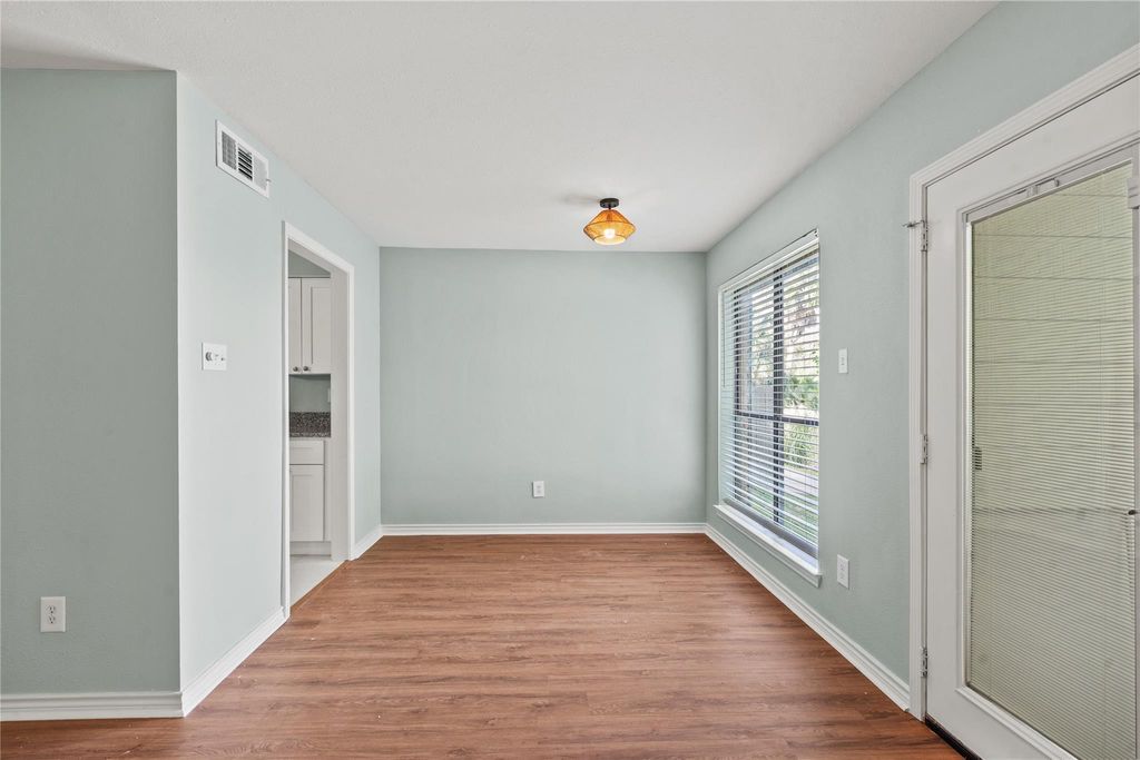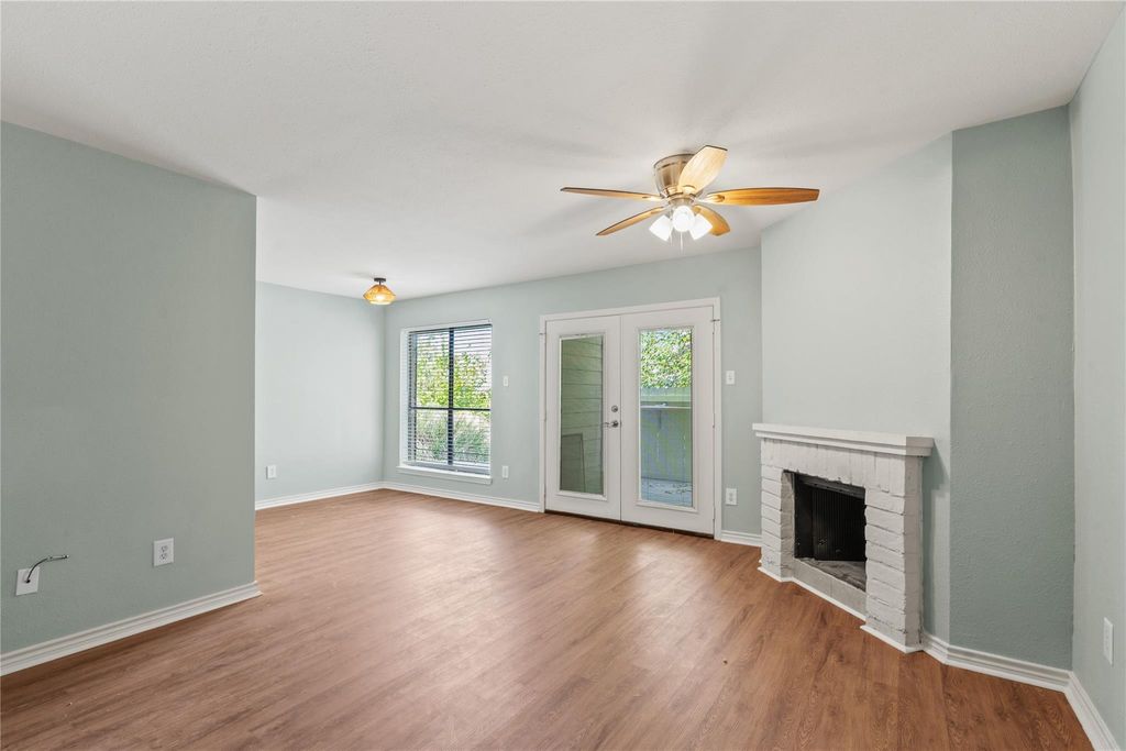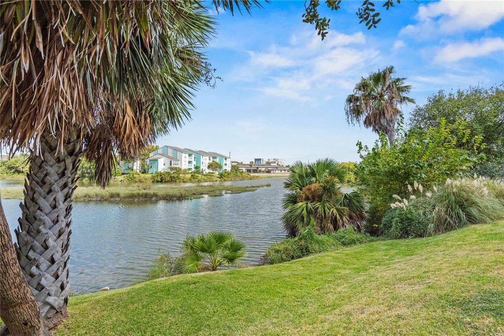 Waterview condo on Green's Bayou! First floor, corner unit in flood zone X in the back of the complex with easy access to the pool. Recently updated with new flooring throughout and refreshed interior paint, creating a modern, cheerful space. The kitchen features new cabinetry, countertops, and microwave. Other features includes a stacked washer/dryer, a mock fireplace for cozy ambiance, and a double vanity & low-entry shower in the bathroom (great for someone with limited mobility). French doors lead to a private patio area with a water view. Additional highlights include electric storm shutters, assigned covered parking, and a secured, gated community for peace of mind.