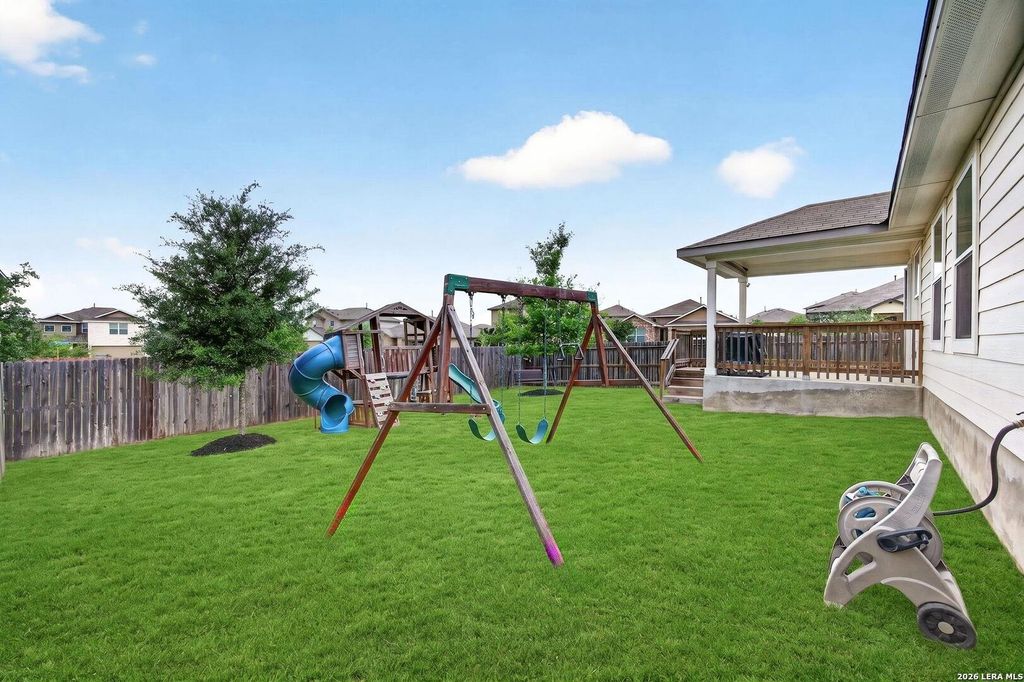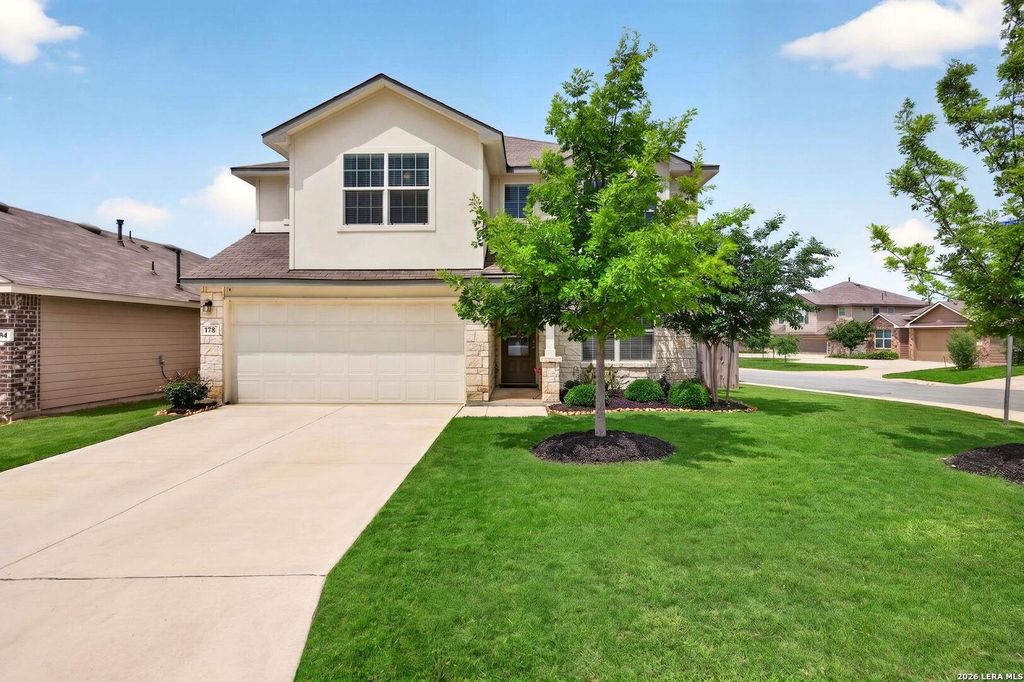 178 Cuban Emerald is listed for sale at $ 324,990. The Single-Family property has 5 bedrooms, 2 Full Bathrooms, 1 Half Bathroom, 2526 square feet and was built in 2022. The lot size is 0 Square feet. ##BR##Welcome to this well-maintained Lombardi on a premium corner lot in Redbird Ranch, priced to move quickly! This 5-bedroom home offers a flexible front space for dining or office, opening into a bright kitchen with island, gas cooking, stainless steel appliances, cabinet hardware, and ceiling fans throughout. The main-level primary suite features upgraded luxury plank flooring, and upstairs includes four spacious bedrooms and a large game room. Enjoy a covered patio and spacious backyard, complete with a playset and relaxing bench swing, both conveying with the home. Washer, dryer, refrigerator, water softener, and storage shed also convey. Located just minutes from the neighborhood’s stocked fishing pond and within the amenity-packed Redbird Ranch community, featuring two pools, splash pad, fitness center, courts, and weekly food trucks/events. Third amenity center within walking distance, including a water slide and pickleball courts, coming soon. Zoned to highly rated Medina Valley I