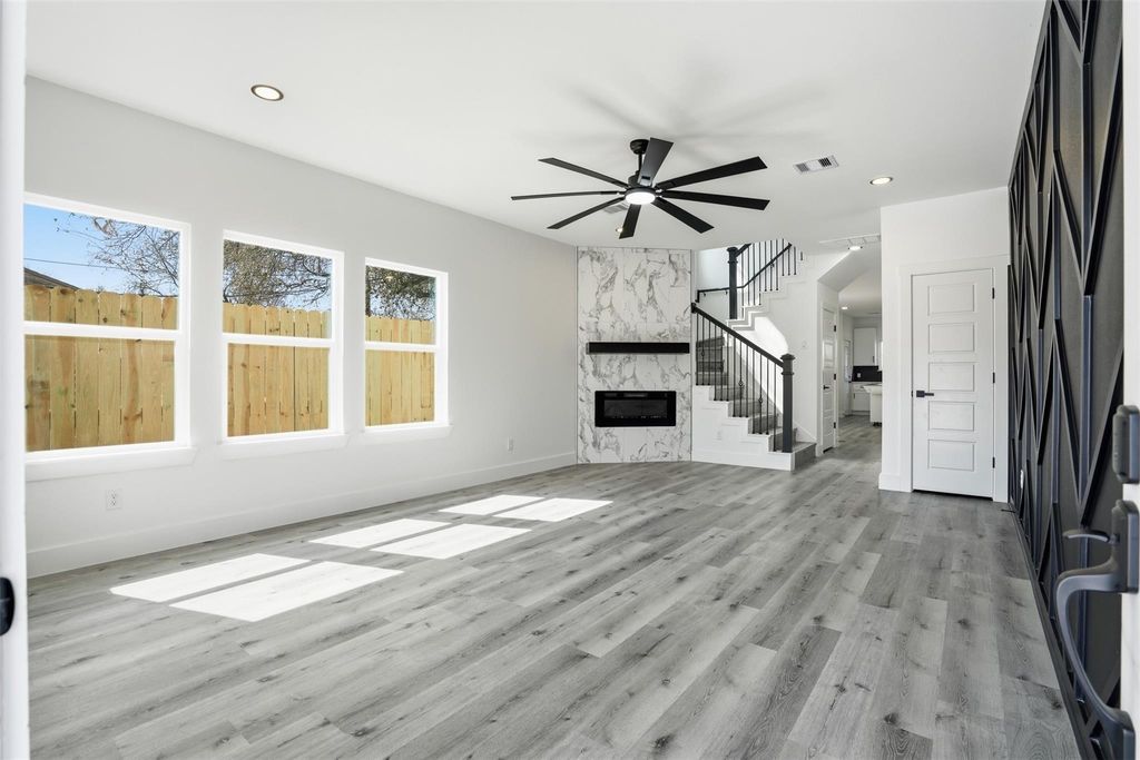 Come see this beautiful new home you won’t want to miss! Designed with a modern black-and-white exterior, oversized windows, this home offers plenty of natural light and timeless curb appeal. Enjoy your mornings on the cozy front porch, appreciate the privacy of a fully fenced yard that gives you the perfect suburban setting. Step inside to an open and inviting floor plan that connects the living room, dining area, and spacious kitchen perfect for gatherings and everyday living. Upstairs features three bedrooms, including a lovely primary suite with a private bathroom, stand-up shower, and walk-in closet. Two additional bedrooms share a full bathroom. Located at 116 S. 3rd St. in La Porte, TX, this stylish new home offers modern finishes and efficient use of space throughout, call today for more information. Room dimensions are approximate.