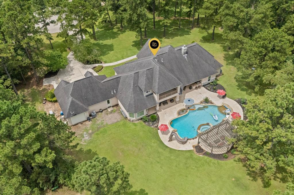 Luxury Living on 2 Acres with Backyard Oasis!Tucked away on a quiet cul-de-sac.Stunning 1.5-story custom home offers the perfect blend of elegance, comfort, and functionality.Featuring 4 spacious bedrooms, 4 full baths, and powder room. Designed for both evryday living and upscale entertaining. Step inside to find custom built-ins throughout, study, and a formal dining room with rich hardwood flooring.Granite kitchen is a chef’s dream, complete with top-of-the-line appliances, butler’s pantry, and an oversized laundry/craft room for added convenience.Open floorplan creates an inviting atmosphere, with all bedrooms located downstairs in a split layout.A dedicated children’s retreat includes built-in desks and storage. Upstairs, enjoy a spacious game room with full bath and a media room—ideal for movie nights and entertaining.Step outside to your private paradise featuring an oversized pool and spa, covered patio, and fully equipped summer kitchen—all surrounded by lush landscaping.