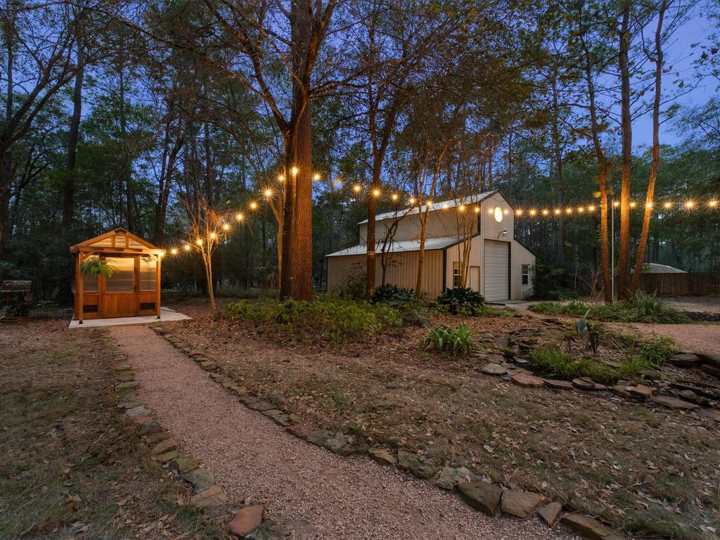 Settled on a 2-acre wooded homesite in Magnolia’s desirable community of Lake Windcrest, this impressive custom residence is destined to enhance your lifestyle. Approx. 4,037 s.f., the 5-BR, 3.5-BA design reveals a main-level ensuite guest bedroom, grand foyer, home office or den, formal dining room and a living room with fireplace. An island kitchen with butler’s pantry and nook shines with granite countertops and white cabinetry, and the first-floor primary suite displays a walk-in closet and an ensuite bath with freestanding tub. Enjoy double-height ceilings, wood and tile flooring, custom millwork, top-tier finishes and fixtures, and an attached 3-car garage. In the private backyard, family and friends will enjoy a covered patio, gazebo with kitchen, creek with bridge, and an outstanding greenhouse. A barn-style shop with 400-s.f. loft features epoxy-finished flooring. Close to parks, playgrounds, lakes, award-winning schools, shopping, dining, trails and downtown Hous