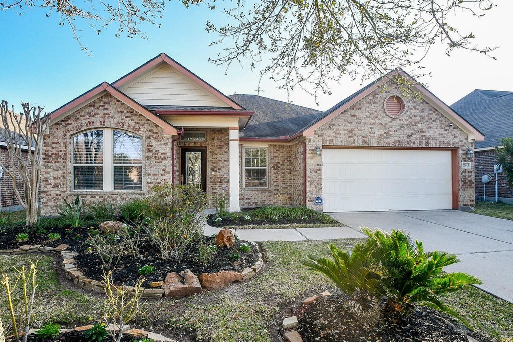 Amazing 1-Story David Weekley Home-3/4 BR, 2 baths & 2-car garage. Highlighted w/sparkling pool & hot tub. Beautiful, lush landscaping welcomes you to a stunning leaded-glass front door entry. Enjoy upgraded tile flooring thru-out. Kitchen is a true centerpiece, featuring-large island*granite countertops & sink*updated cabinetry w/pots-pans drawers & updated appliances-2023. The spacious, relaxing primary suite offers a walk-in closet, jetted tub*dual sinks*framed mirror, and a new glass shower enclosure-2026. Split bedroom plan includes game room/flex space ideally located between the bedrooms. Study/home office offers flexibility & can easily serve as a 4th BR. Add'l highlights include LED lighting thru-out, sprinkler system, & numerous recent updates for peace of mind. Roof-4/2018. Interior paint-refreshed in 2022 & in 2026, exterior paint-2023, & fence replaced in 2022. Washer & dryer from 2023 will remain in the home-refrigerator stays as well. Move-in ready and easy to love!