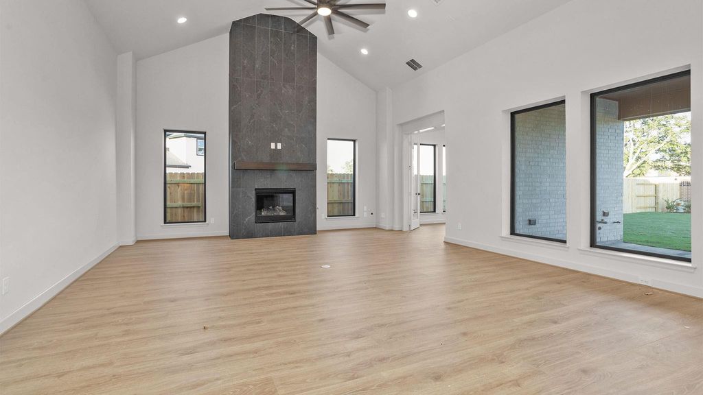 READY FOR MOVE IN!! A large front porch opens into a grand two-story entryway that boasts a curved staircase. A private guest suite is located off the entrance and features a private hallway to the one-car garage. There is a formal dining room. You enter the grand family room which boasts tall ceilings, a wood mantel fireplace, and wall of windows. French doors lead into the home office right off the living space. An island with built-in seating, walk-in pantry, double wall oven, 5-burner gas cooktop and butler's pantry that leads into the dining room completes the kitchen. The morning has access to the covered backyard patio. The primary bedroom boasts a tray ceiling. Primary bathroom which boasts dual vanities, a freestanding tub, glass enclosed shower, and large walk-in closet. Upstairs you are greeted by a view to the first floor and a private guest suite. The oversized game room is connected to the media room and two secondary bedrooms that feature a Hollywood bathroom.