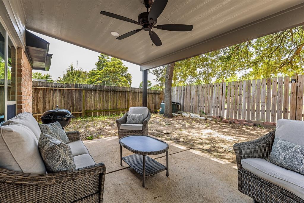 Stunning, fully remodeled, one-story home that’s completely move-in ready! This beautifully updated property features an open-concept layout with recessed lighting, luxury vinyl and tile flooring, and a spacious living area perfect for entertaining. The modern kitchen boasts quartz countertops, soft-close cabinets, stainless steel appliances, and opens seamlessly into the large living room. A custom accent wall in the dining area adds a stylish touch, creating an inviting space for gatherings. The living room window overlooks a generous covered patio and a backyard shaded by beautiful mature trees—perfect for enjoying summer days. Major updates include a 3.5-ton HVAC system installed in 2025, roof replaced in 2023, double pane windows added in 2023, and a new water heater also from 2023. Don’t miss your chance to own this charming and move-in-ready home!
