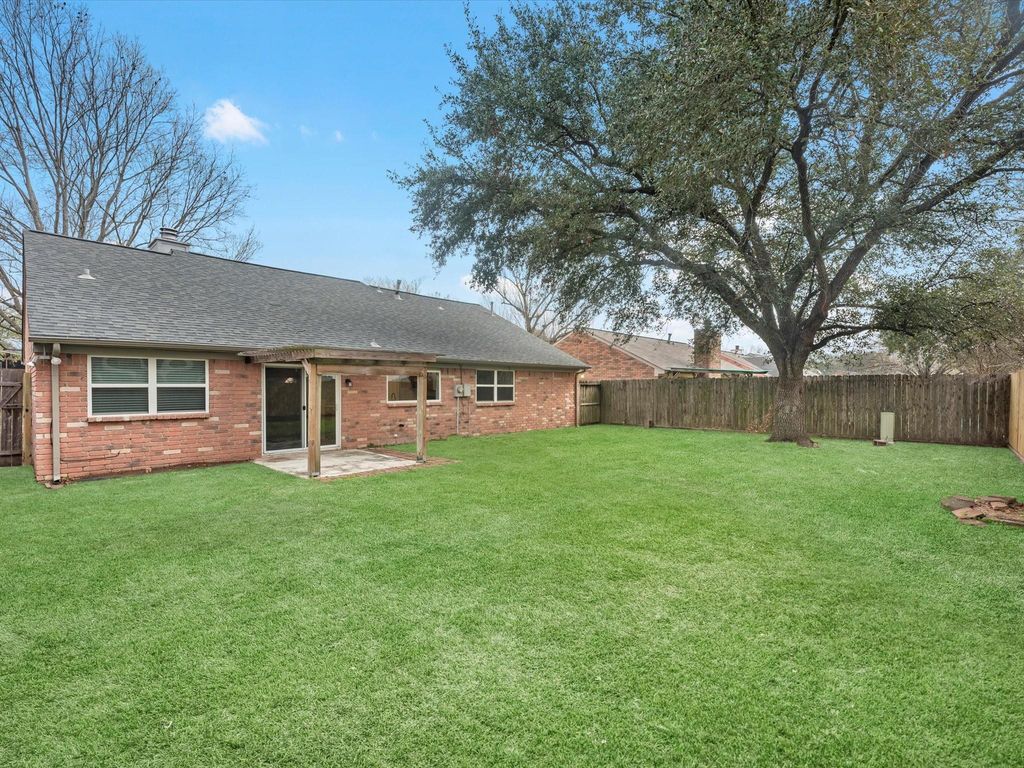 Squeaky clean, single-story 3-bed, 2-bath ready for move-in! Spacious open family room with cozy fireplace flows seamlessly into a beautifully updated kitchen featuring oak cabinets with modern black hardware, white granite counters, stainless appliances (fridge included), gas range, subway tile backsplash, under-cabinet lighting, and stylish fixtures throughout. Bright breakfast area adjacent to kitchen. Oversized primary suite offers abundant storage, including a large walk-in closet. Both bathrooms are thoughtfully updated. Flooring includes laminate, tile, and carpet. 2-car garage with opener. Expansive backyard with basketball goal — perfect for entertaining or relaxing. This one shows beautifully — schedule your tour today!