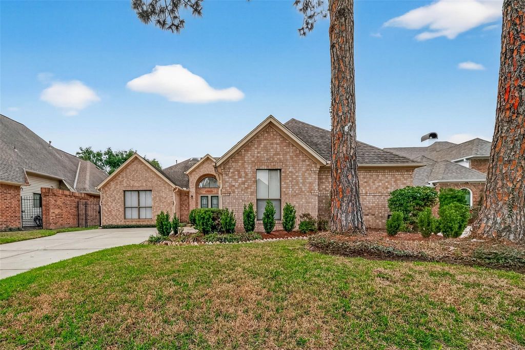 Beautiful one-story rental in the established Bay Forest community featuring a light, open floor plan with generous living spaces and abundant natural light. The main living area showcases a warm fireplace and flows seamlessly into the kitchen and breakfast area. The kitchen offers ample cabinet and counter space, creating a functional layout for everyday living. Spacious primary suite with private bath, dual sinks, tub, and separate shower. Secondary bedrooms provide comfortable accommodations with ample closet space. Neutral tones and well-maintained finishes throughout. Private backyard with patio space, ideal for outdoor enjoyment. Attached two-car garage and mature landscaping complete this inviting home located near parks, neighborhood amenities, and convenient access to shopping and dining. Walking distance to Clear lake HS, UHCL and Falcon Pass Elementary via walking path.